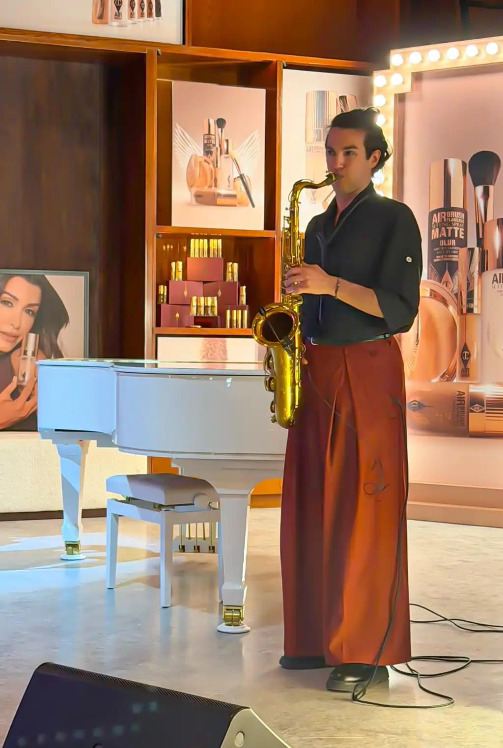 Live makeup demonstrations continued nonstop, paced only by music. Zafer Özkan's saxophone notes floated through the air. The room's energy was in DJ Sonya's hands.